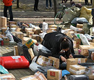 10.由系統(tǒng)生成每票貨物的標簽,并粘貼到對應的貨物外箱上,然后分區(qū)域擺放。